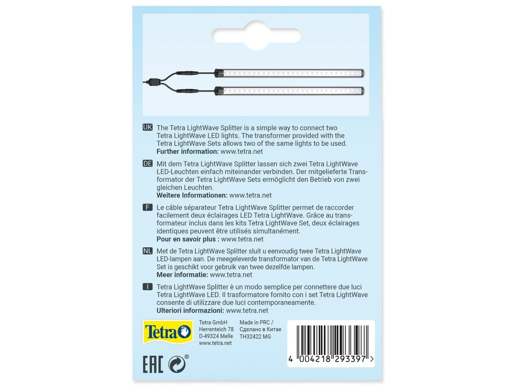 Pomocí Tetra LightWave Splitteru lze snadno vzájemně propojit dvě světla Tetra LightWave LED.