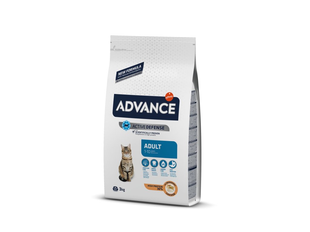 ADVANCE CAT Adult kuře a rýžeSuperprémiové krmivo speciálně navrženo pro dospělé kočky s vysokým obsahem kuřecího masa 21 %. Obsahuje omega-3 a omega-6 mastné kyseliny a vitaminy, které přispívají ke zdravé kůži a lesklé srsti. Speciální minerální látky – pyrofosforečnany pomáhají předcházet tvorbě zubního plaku a podporují svěží dech. Kombinace minerálních látek a specifických složek udržuje optimální pH moči. Kuře a rýže jsou přísady, které lze snadno strávit, s obsahem imunoglobulinů, které přispívají ke střevnímu zdraví. Jakmile vaše kočka dosáhne dospělého věku, její nutriční potřeby se změní a potřebuje krmivo, které pomáhá udržovat ideální tělesnou kondici. Krmivo Advance Adult je špičkové a snadno stravitelné, splňuje specifické potřeby vaší kočky a posiluje její přirozené bariéry a obranyschopnost.