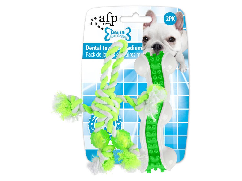 Praktický balíček dvou žvýkacích hraček – lanový panáček a kost z nylonu a termoplastické gumy, které dohromady přinášejí rozmanitou zábavu spojenou s péčí o chrup. Různé textury – Nylon je tvrdý a odolný, TPR je pružnější a šetrný k dásním. Díky této kombinaci si pes může užít pestrý zážitek při kousání. Dentální účinek – Nejrůznější výstupky a rýhy na kosti pomáhají při kousání mechanicky čistit zuby, masírovat dásně a omezovat tak tvorbu plaku a zubního kamene. Dlouhá výdrž – Pevná konstrukce odolá i ostrým zoubkům. Velikost lana: 19 x 6 x 4,4 cm Velikost kosti: 13 × 4 × 4 cmDoplňkové parametry