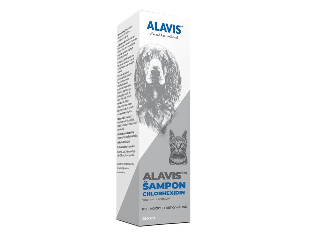 ALAVIS™ Šampon Chlorhexidin je šampon pro zevní péči o srst a kůži psů, koček, fretek a koní obohacený o složku chlorhexidinu, která pomáhá snížit výskyt nežádoucích mikroorganismů a Aloe vera, jenž vykazuje protizánětlivý účinek, napomáhá rychlejšímu hojení poranění a podporuje tak účinek šamponu. Je vhodný pro podporu léčby kožních onemocnění.