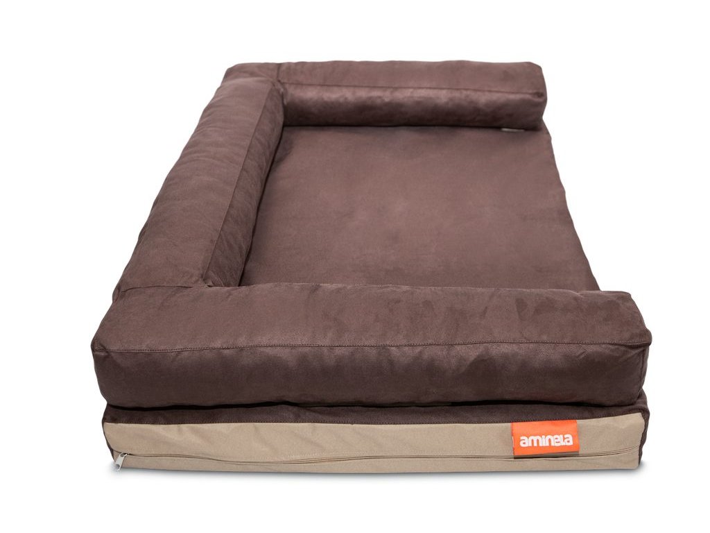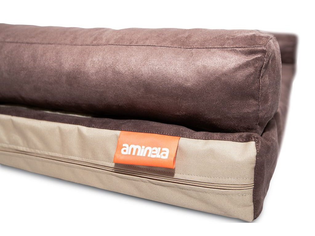 Matrace Aminela se skládá z dvou odolných materiálů, z voděnepropustného materiálu a měkkého, hebkého, avšak pevného a voděodpudivého materiálu, který nešustí a pro psa je velmi pohodlný. Ze stejně hebkého a pohodlného materiálu je vyroben okraj, který se na matraci přichytí pomocí suchých zipů. Kdykoliv se dá okraj odlepit a zase nalepit.