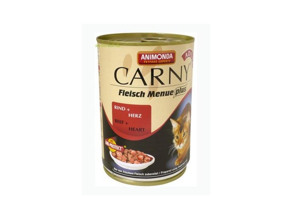 Animonda Hovězí konzerva se srdcem pro kočky 400 gKonzervy Animonda Carny jsou vyrobeny z čerstvého masa a jsou určeny pro dospělé kočky. Každá konzerva obsahuje minimálně 93 % masa a speciální kombinaci antioxidantů pro pevnější imunitu a obranyschopnost. Animonda Carny je vyvážené, kompletní krmivo, které je přizpůsobeno požadavkům koček. Neobsahuje umělá barviva, konzervanty, obiloviny ani sóju. Dopřejte své kočce kvalitní stravu, která je obsažena v konzervách Animonda CARNY.