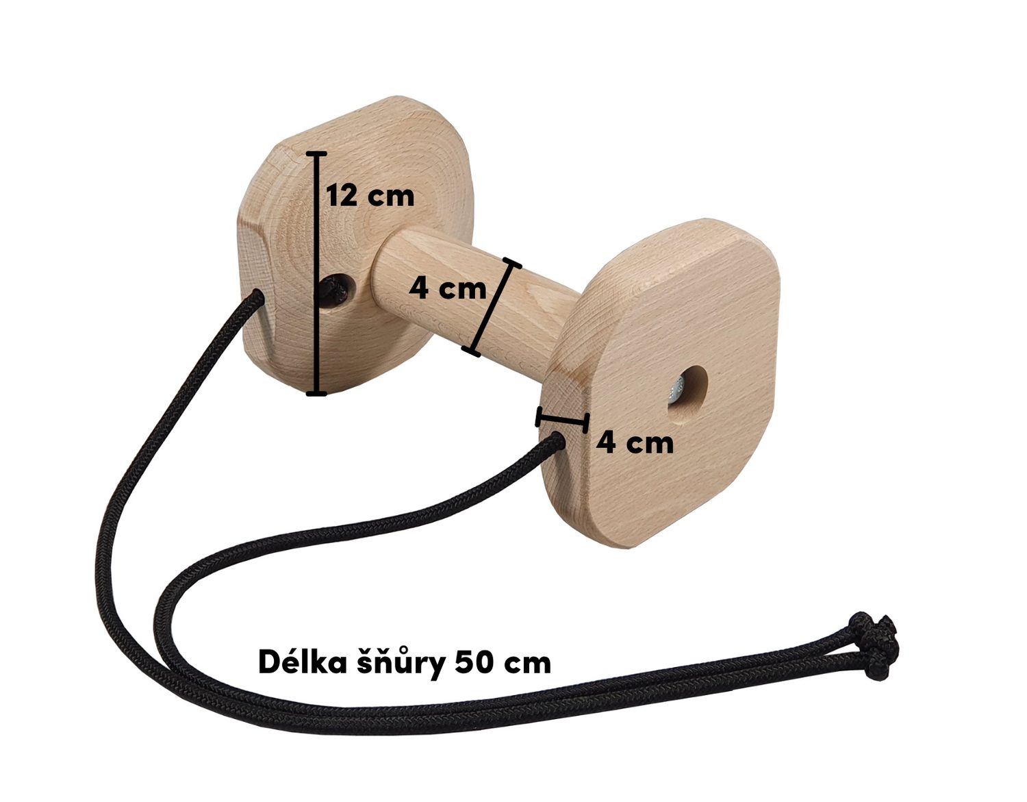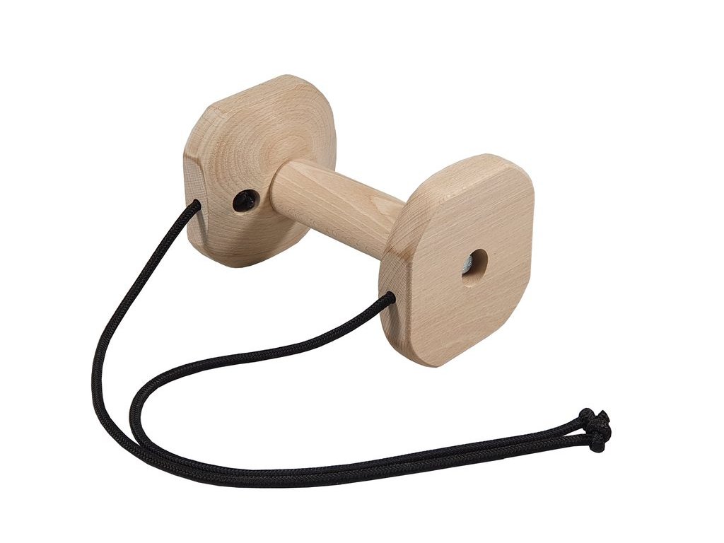 Tato kvalitní dřevěná činka je ideální pomůckou pro výcvik i aportování. Je vyrobena z pevného soustruženého dřeva, které dobře odolává opakovanému používání. Po stranách je opatřena lanem o délce 50 cm, které umožňuje pohodlný úchop výcvikářem a slouží také k přetahování se psem. Činka je perfektní pro nácvik poslušnosti, přinášení i společnou hru.