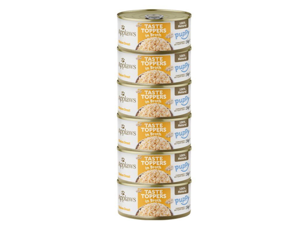 Zvýhodněné balení skvělých přírodních konzerv pro štěňata plných kousků z kuřecích prsou v lahodném kuřecím vývaru!Doplňkové krmivo Taste Toppers pro štěňata od dvou měsíců věku. Konzervy Applaws pro psy obsahují pouze čisté maso v celých kouscích! Žádné náhražky a imitace masových kousků. K výrobě této konzervy se používají se pouze ty nejjemnější kousky kuřecích prsou, tedy vysoce kvalitní bílkoviny pro podporu růstu a vývoje vašeho štěněte. Trhané kousky kuřete, speciálně vyrobené pro štěňata s vyvíjejícími se zuby a dásněmi. Kuřata jsou z volných výběhů a jsou krmena výhradně organickým krmivy bez použití hormonů.