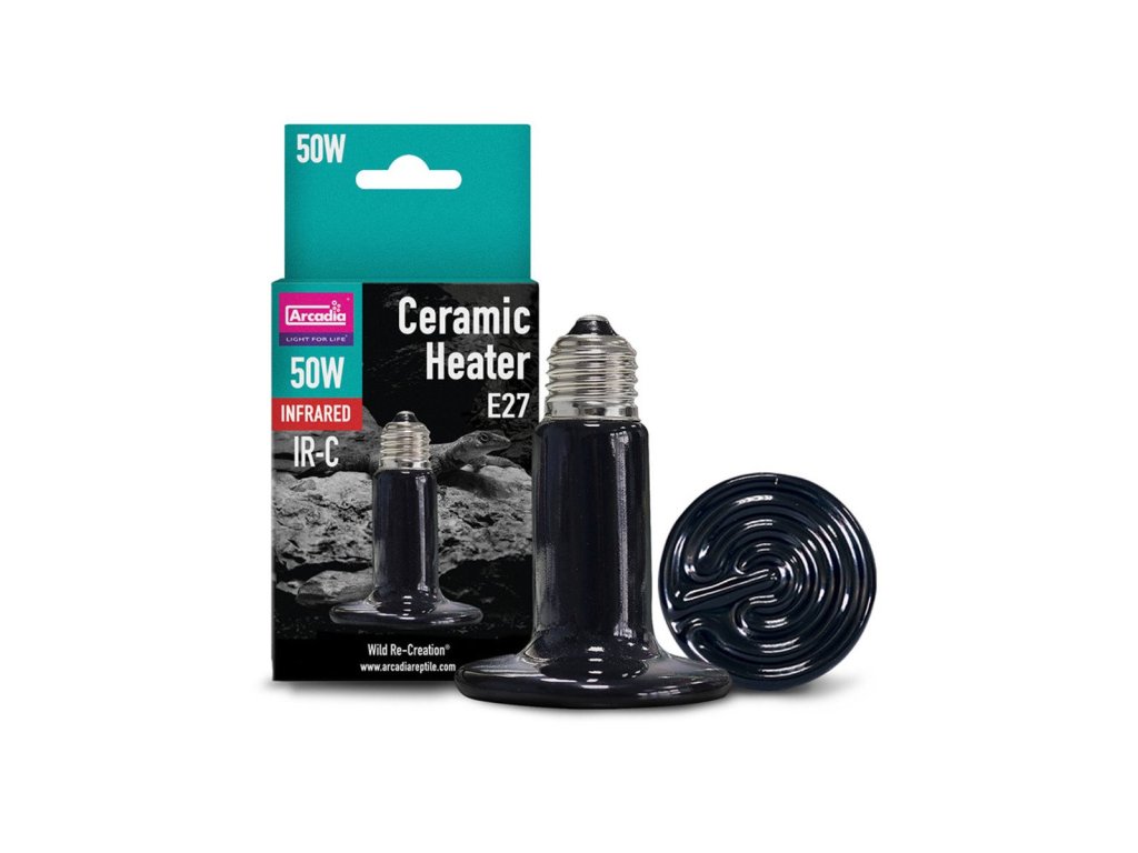 Ceramic Heater se instaluje do klasických porcelánových objímek E27, je proto ideální pro vytápění terárií shora. Je možné jej napojit na termostat a používat neustále, např. i v noci. Díky tomu, že nevydává žádné světlo nenaruší zvířatům cyklus den/noc.