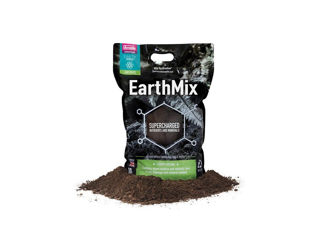 Arcadia Earth Mix je zcela nový typ bioaktivního substrátu, který může být používán samotný, nebo jako příměs do substrátů tvořených kůrou, pískem, různými typy hlíny či jílu.