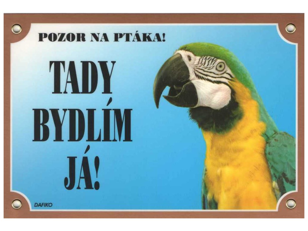 Barevná cedulka Pozor pes, ARA Ararauna