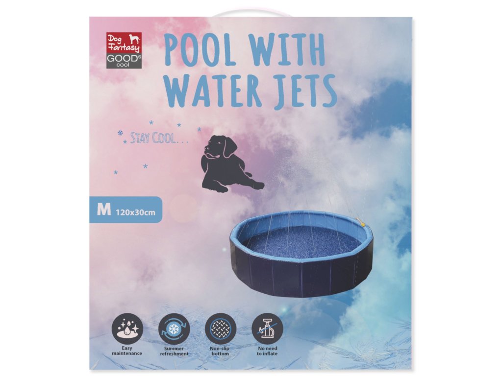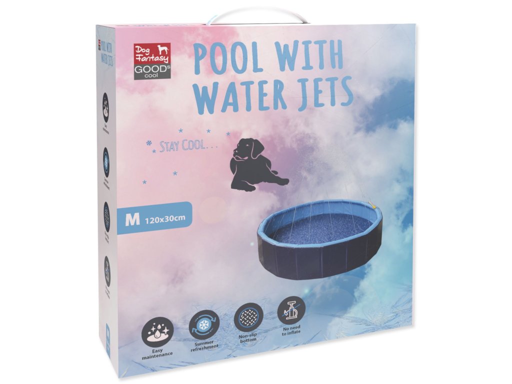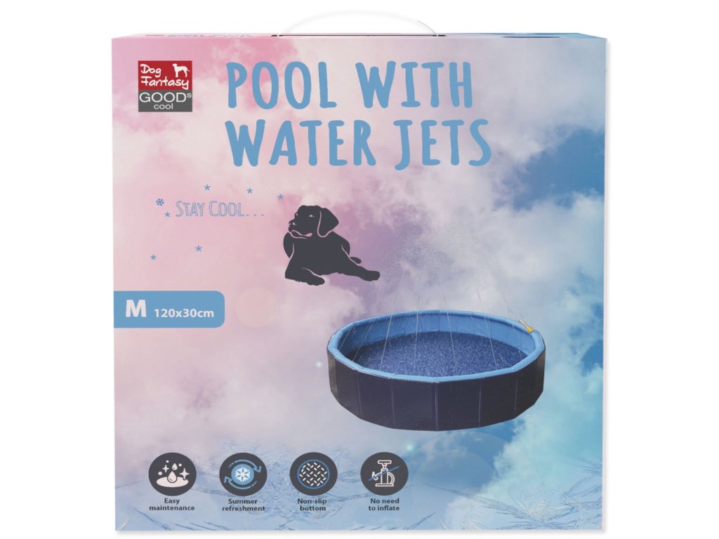 Bazén pro psy s vodními tryskami od Dog Fantasy – ideální způsob, jak se váš pejsek může v letních vysokých teplotách úžasně zchladit.