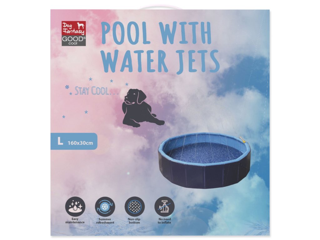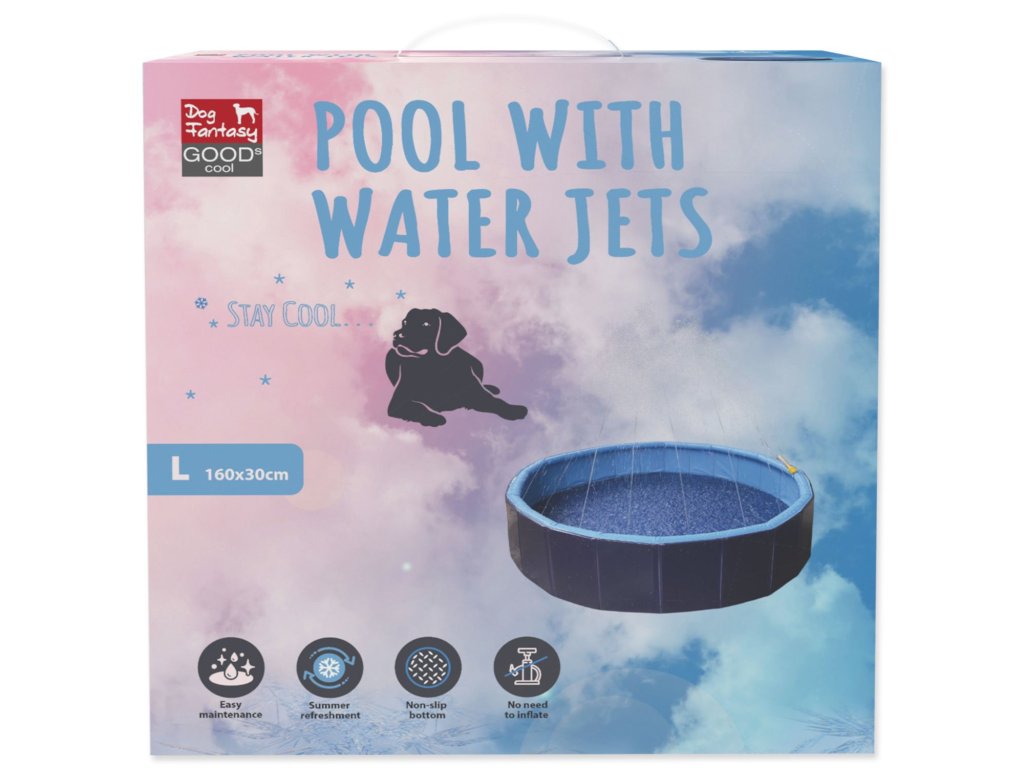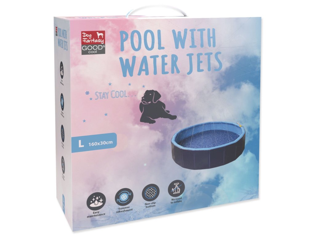 Bazén pro psy s vodními tryskami od Dog Fantasy – ideální způsob, jak se váš pejsek může v letních vysokých teplotách úžasně zchladit.