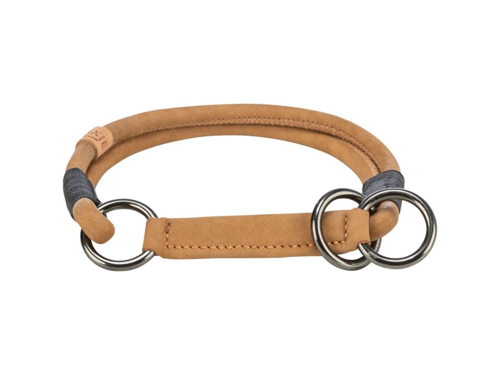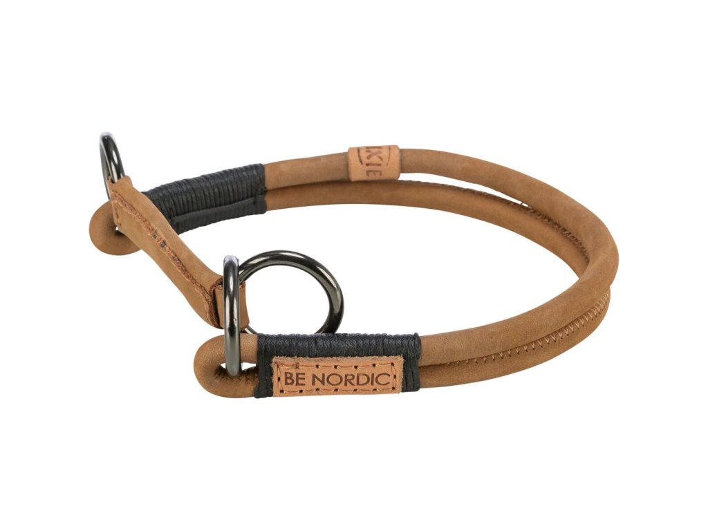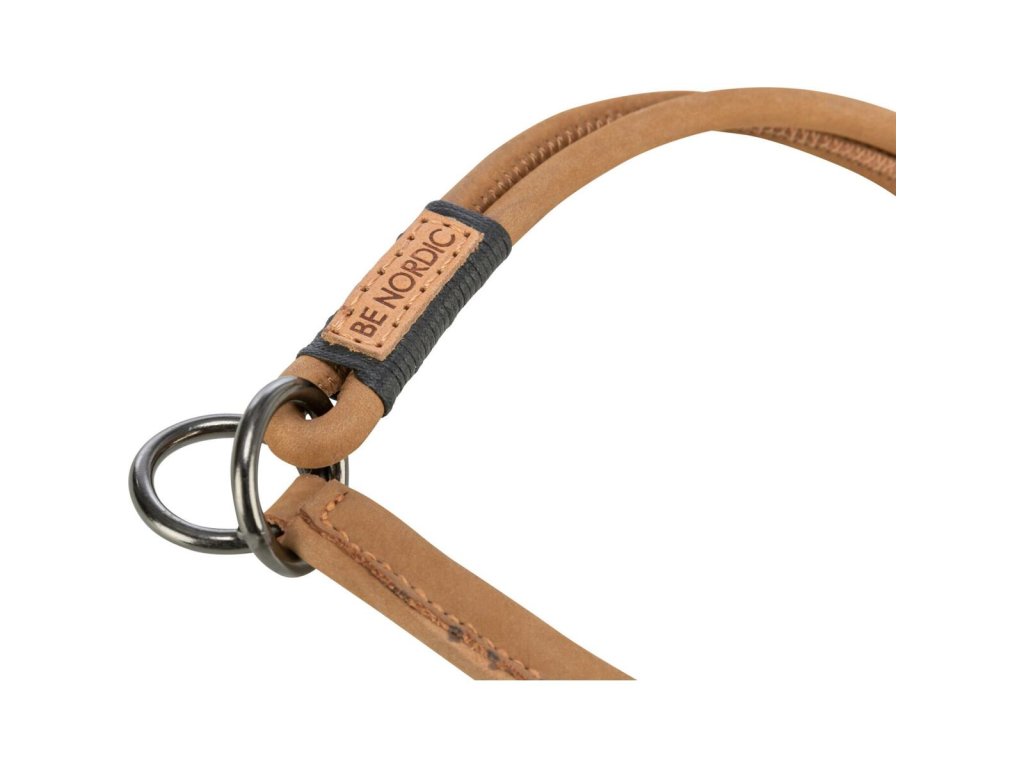 BE NORDIC kulatý polostahovací kožený obojek, hnědá