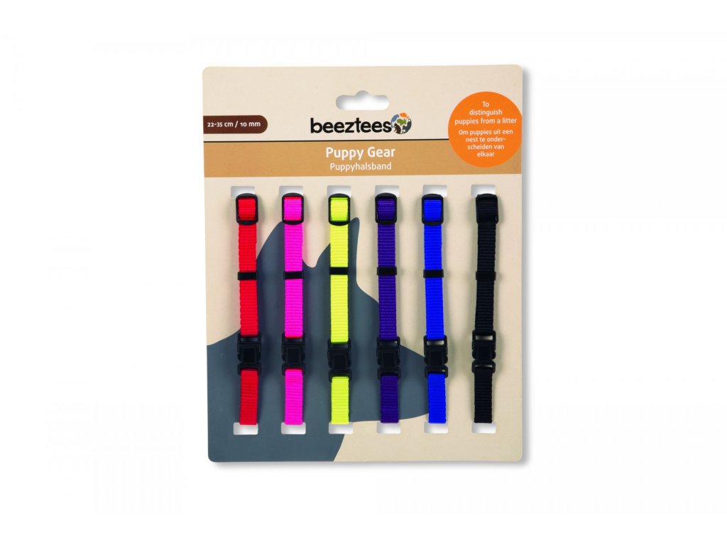 Beeztees obojky nejen pro štěňata mají veselé barvy a jsou ideální pro rozlišení čerstvě narozených štěňátek. Obojky jsou nastavitelné a mají přezku na rychlé zapnutí a odepnutí obojku. Rozměr: 22-35 cm x 10 mm - 6 ks.