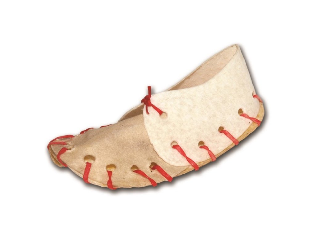 Žvýkací pochoutka z bůvolí kůže ve tvaru sandálku.