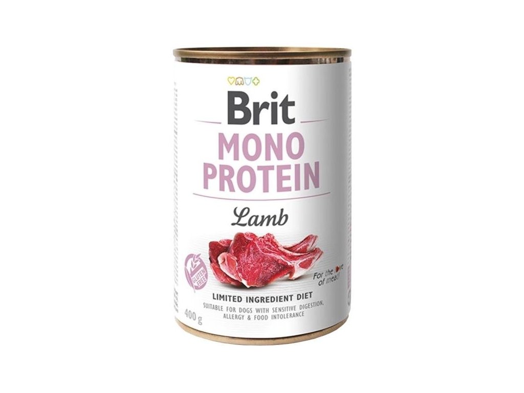Konzerva Brit Mono Protein LambPsi s citlivým zažíváním potřebují krmivo, které neobsahuje žádný ze škodlivých alergenů. Konzervy s jedním druhem proteinu mohou vyřazovací metodou ukázat, co vašemu škodí. Kvůli stravitelnosti jsou jednoproteinové konzervy vyrobeny vždy jako paštika, tím jsou přístupné i psím seniorům. Krmivo neobsahuje lepek, sóju ani GMO.