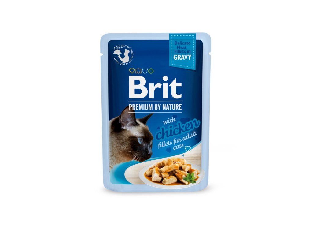 Brit Premium Cat Delicate Fillets in Gravy with Chicken 85 gŠťavnaté kuřecí kousky vařené v páře si zachovávají původní masovou chuť i vůni. Kapsička neobsahuje obilí, umělá barviva, ani konzervanty. Obsahuje vitaminy a minerální látky ve vyváženém poměru. Koťatům přináší příjemný zážitek, který zasytí i prospěje zdraví.