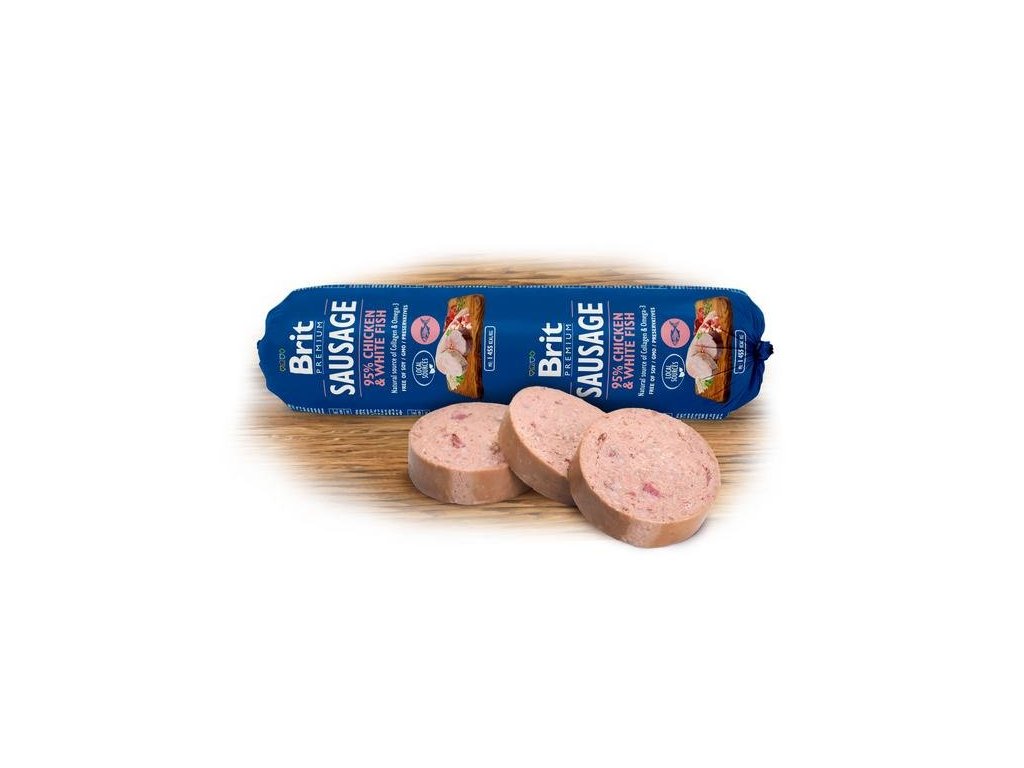 Brit Sausage Chicken & White fishKrmivo pro psy, které obsahuje 95 % masa, je vhodné pro všechny kategorie psů. Vzhledem ke své vlhké konzistenci velice psům chutná a dodávám jim potřebnou energii při vysoké fyzické zátěži i v rekonvalescenci. Bílá ryba je vyváženým zdrojem omega-3 polynenasycených mastných kyselin, které mají pozitivní vliv na kvalitu osrstění psa. Díky snadnému porcování a konzistenci masa se toto krmivo skvěle hodí i jako pamlsek při tréninku.