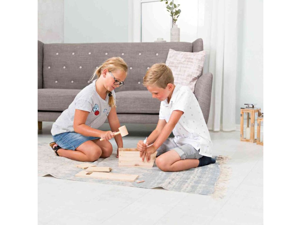 - Balení obsahuje i ilustrovaný návod k sestavení a dřevěné kladívko.