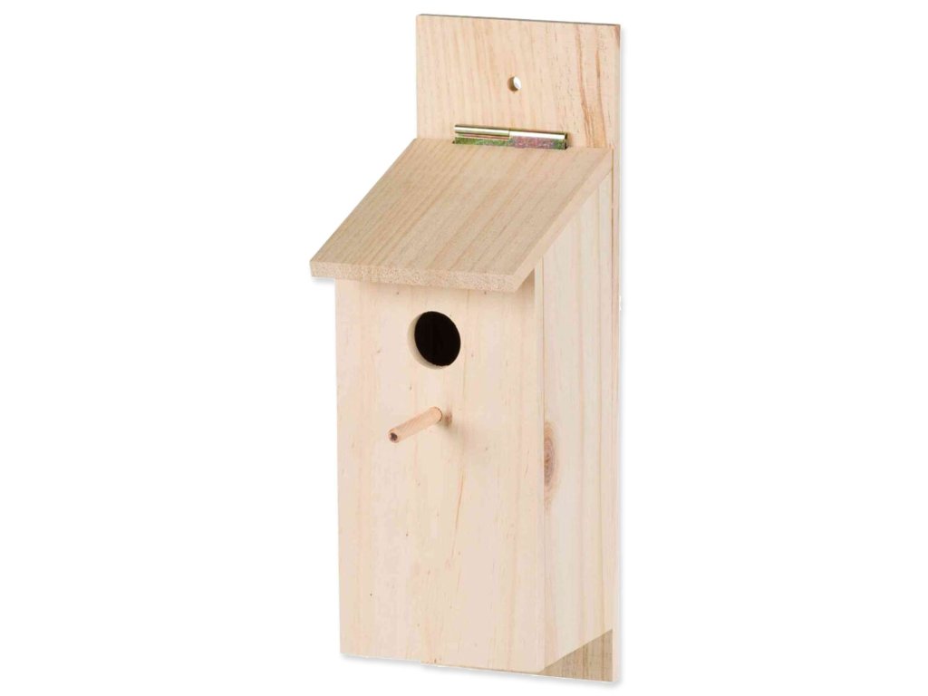 - Budka je vyrobena z neopracovaného dřeva.