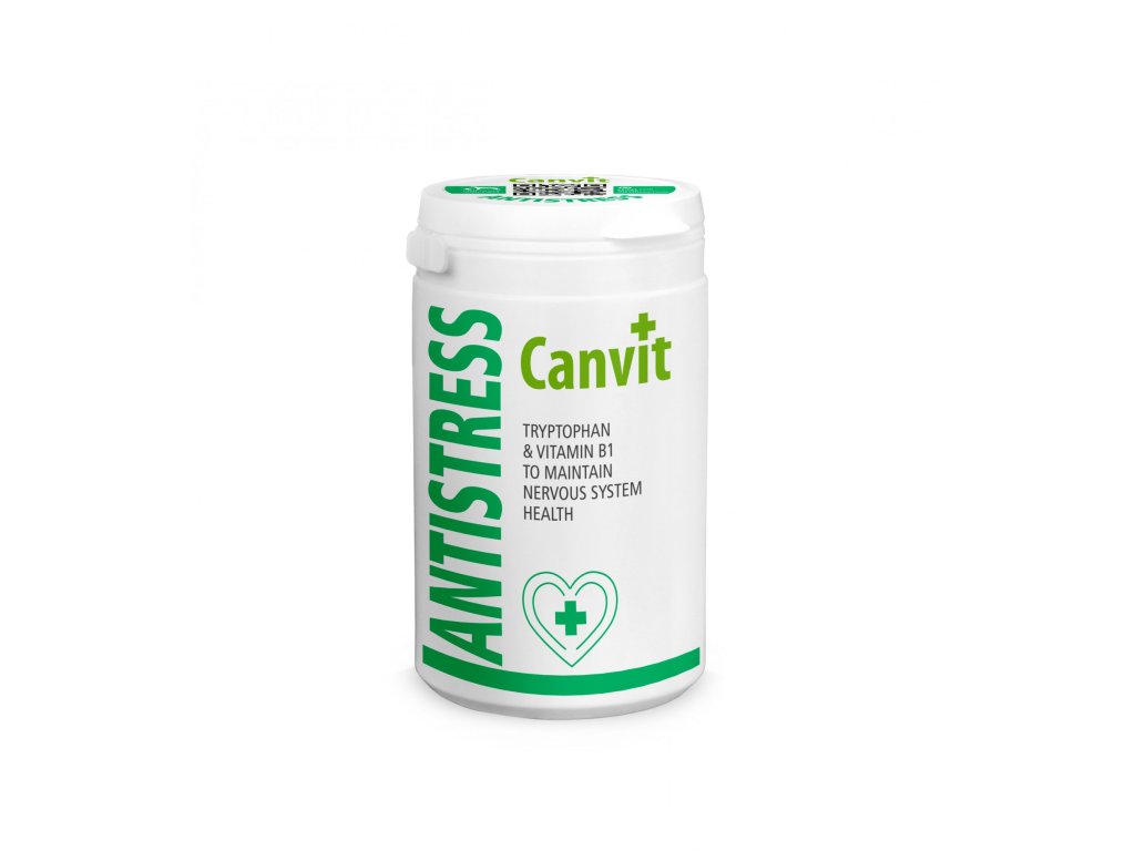 Canvit Antistress pro psy a kočkyCanvit Antistress pro psy a kočky nabízí účinný způsob jak mazlíčkovi pomoci ve stresových situacích, které jsou pro jeho psychickou pohodu náročné (návštěva veterináře, strach z bouřky a ohňostrojů, cestování, apod.). Kombinace vybraných přírodních složek, léčivých bylin a vitaminů poskytnou zvířeti ochranu a podporu, aby se cítilo bezpečně, šťastně a uvolněně. Zklidňující a relaxační účinek konopí a heřmánku posílí kozlík lékařský spolu s extraktem z kantalupského melounu. Společně přispějí k obnově přirozeného chování v náročných situacích. L-Tryptofan a vitamin B podporují tvorbu serotoninu, hormonu štěstí, který je významný pro přirozenou úlevu od úzkosti a neklidu.