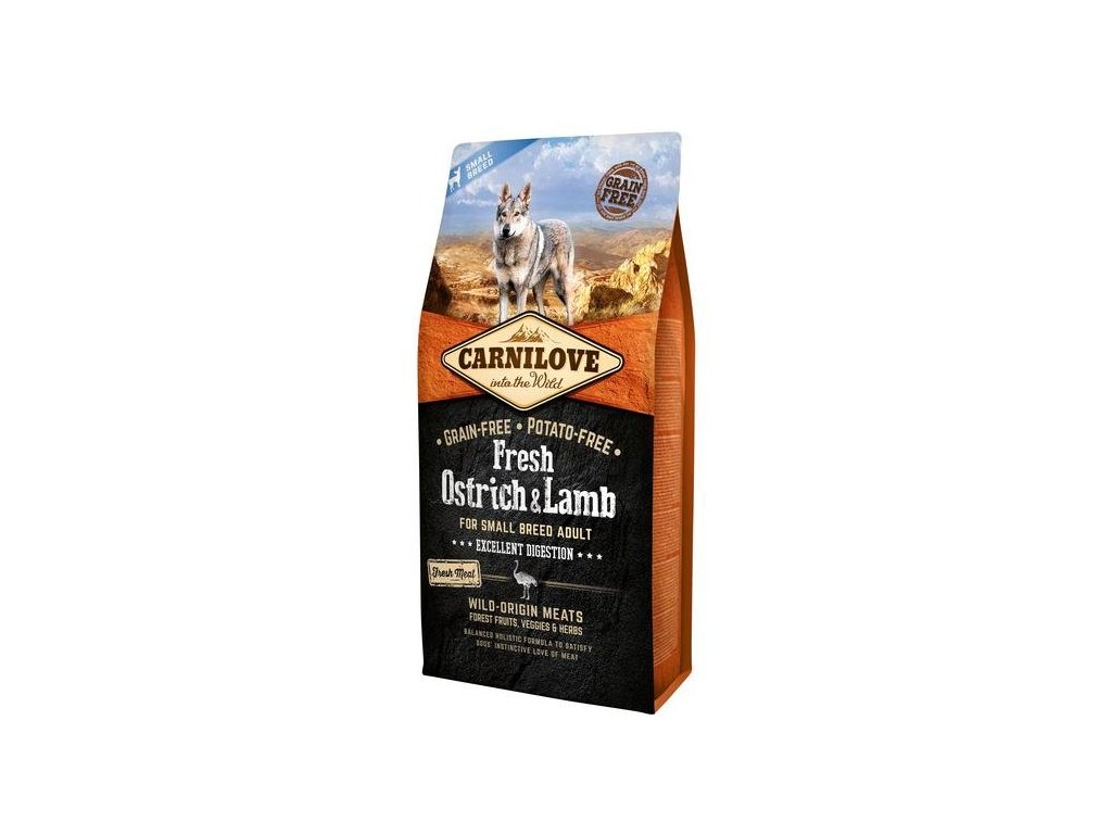 Carnilove Fresh Pštros & Jehněčí superprémiové, holistické krmivo bez obilovin a brambor s čerstvým masem pro dospělé psy malých plemen. Krmivo bylo navrženo s respektem k původní přirozenosti psů tak, aby jim poskytl vyváženou stravu bohatou na čerstvé maso v kombinaci s různými druhy zeleniny, ovoce a bylin- Optimální vstřebávání živin a příznivěpůsobí na zdravé trávení, čímž pomáhá udržovat psy malých plemen ve výborné fyzické kondici