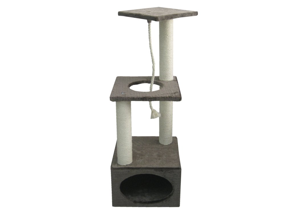 Dopřejte své kočce doplněk, kterým je škrabadlo firmy Cat-Gato. Škrabadlo Gloria special 109 cm je v šedé barvě, má boudu, má dva sloupky omotané sisalovým provázkem, tři plochy na relaxování, z nichž jedna je s dírou uprostřed a provlečeným provazem. Tento hrací prvek láká kočky k použití škrabadla. Je pohodlné pro kočičí odpočinek ale také stabilní díky boudě, která je základem konstrukce. Škrabadlo je vyrobeno z odolných materiálů.