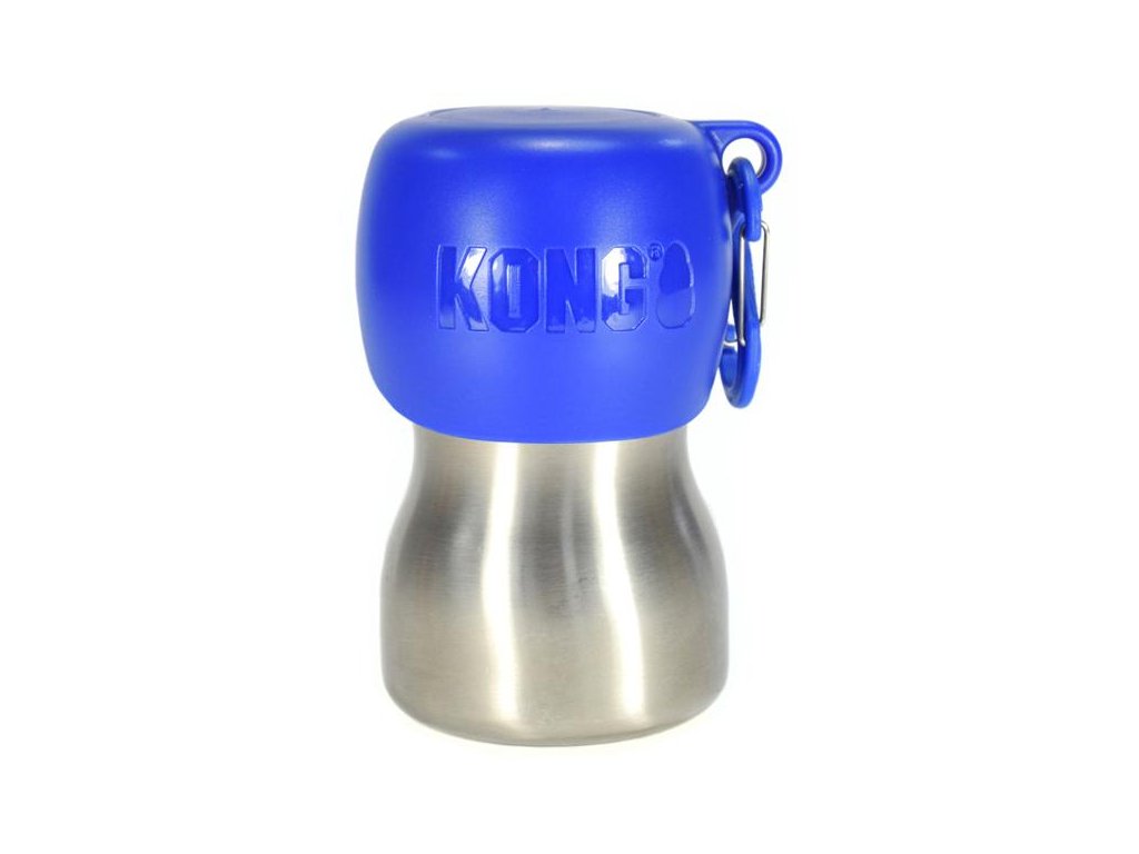 Každý pes potřebuje dostatečný přísun pitné vody – na dlouhé procházce, při cestování, po venkovní aktivitě, a to zvláště za horkých dnů. Láhev KONG H2O se pro dodržení pitného režimu dokonale hodí. Snadno se přenáší a díky karabině lze připnout např. na batoh. Vzhledem k objemu je cestovní láhev vhodná pro malé až středně velké psy. Je vyrobena z nerezové oceli, odolná proti vytečení a 100% recyklovatelná. Šroubovací uzávěr z netoxického polypropylenového materiálu lze použít jako napájecí misku.