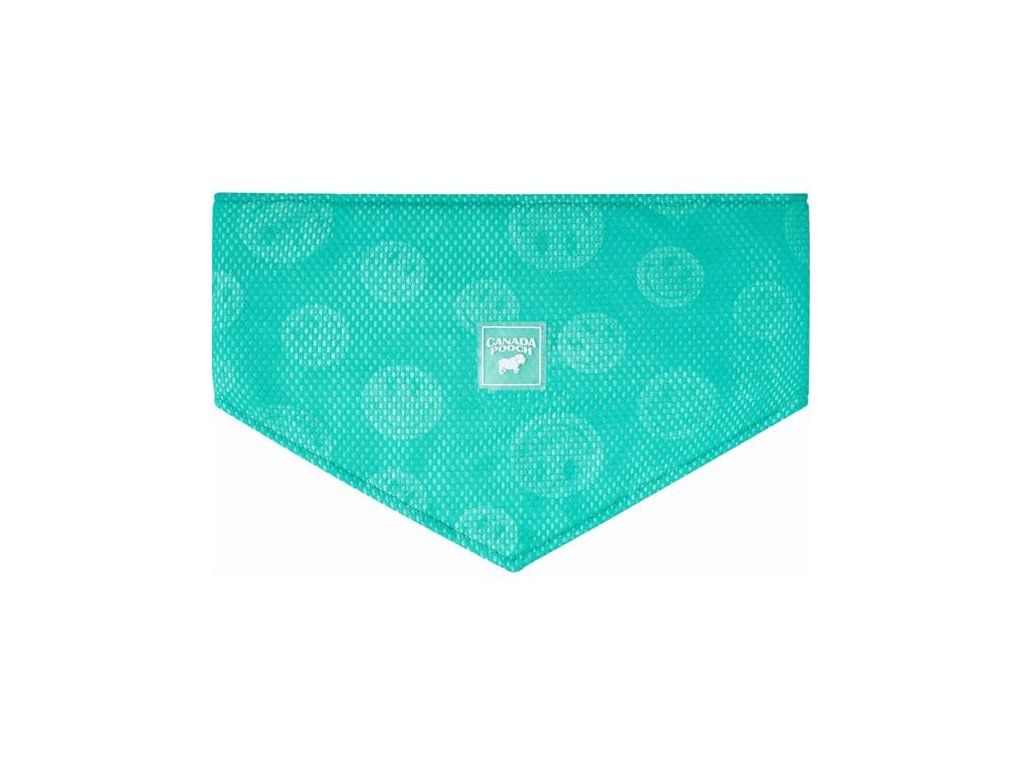 Funkční a stylový chladicí šátek Canada Pooch Wet Reveal Cooling Bandana vám pomůže ochladit vašeho psa za letních veder. Po namočení síťovaného materiálu se voda začne odpařovat a šátek díky tomu příjemně chladí. Nevyužívá přitom žádné chemické chladicí látky, pouze speciální savou, a přitom prodyšnou síťovinu, která dobře zadržuje vodu a umožňuje její postupné odpaření. Při namočení navíc odhaluje vzor veselých smajlíků. Šátek lze namočit před nasazením nebo polévat vodou přímo na psovi. Zapíná se na patentky za krkem.