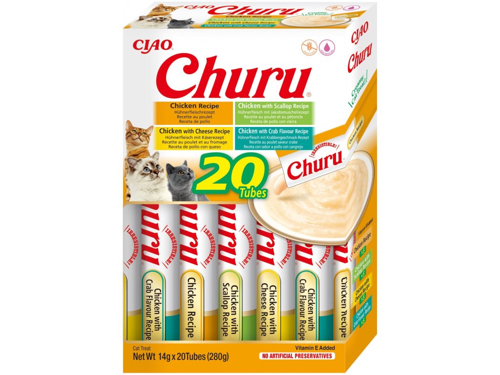 Pamlsky Churu jsou 100% přírodní a zdravé mlsání pro kočičky všech věkových kategorií. Churu jsou ideální pro ukrytí tablety na odčervení či jiného léku, který je potřeba kočce nenásilně podat.