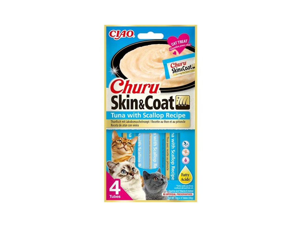 Churu cat masové pyré pro krásnou srst a kůži - tuňák, hřebenatky 56g
