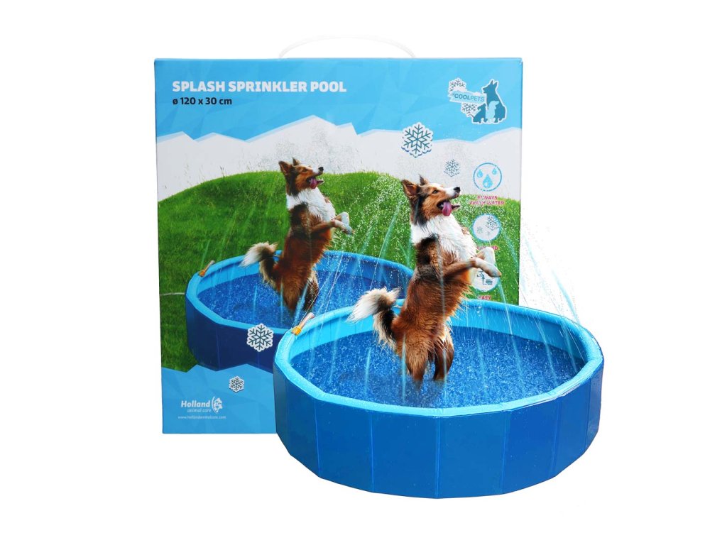 Psí bazének se samochladící gelovou vrstvou ve stěnách a kropítkem po obvodu. Vychytaná letní zábava pro všechny malé vodomily! Zábavný a bezpečný způsob, jak ochladit své mazlíčky v horkých letních dnech! Zábavný bazének, ve kterém se vykoupe rád každý pes.Bazének je samonosný a stačí ho rozložit na povrch bez nerovností a kamenů a naplnit vodou. Pro spuštění kropítka po obvodu bazénku připojte zahradní hadici ke konektoru, až se obvod bazénku naplní vodou, začne z něj stříkat voda.