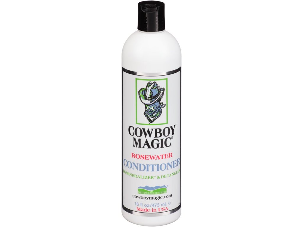 COWBOY MAGIC® Rosewater Conditioner je novou inovací na trhu s koňskou kosmetikou. Neutralizace problémového povrchu a ošetření vlasů je již mnoho let běžná součást péče v kadeřnických salonech. Výsledkem používání kondicionérů jsou krásné a zdravé vlasy. Nyní tuto péči máme i pro koňskou srst.