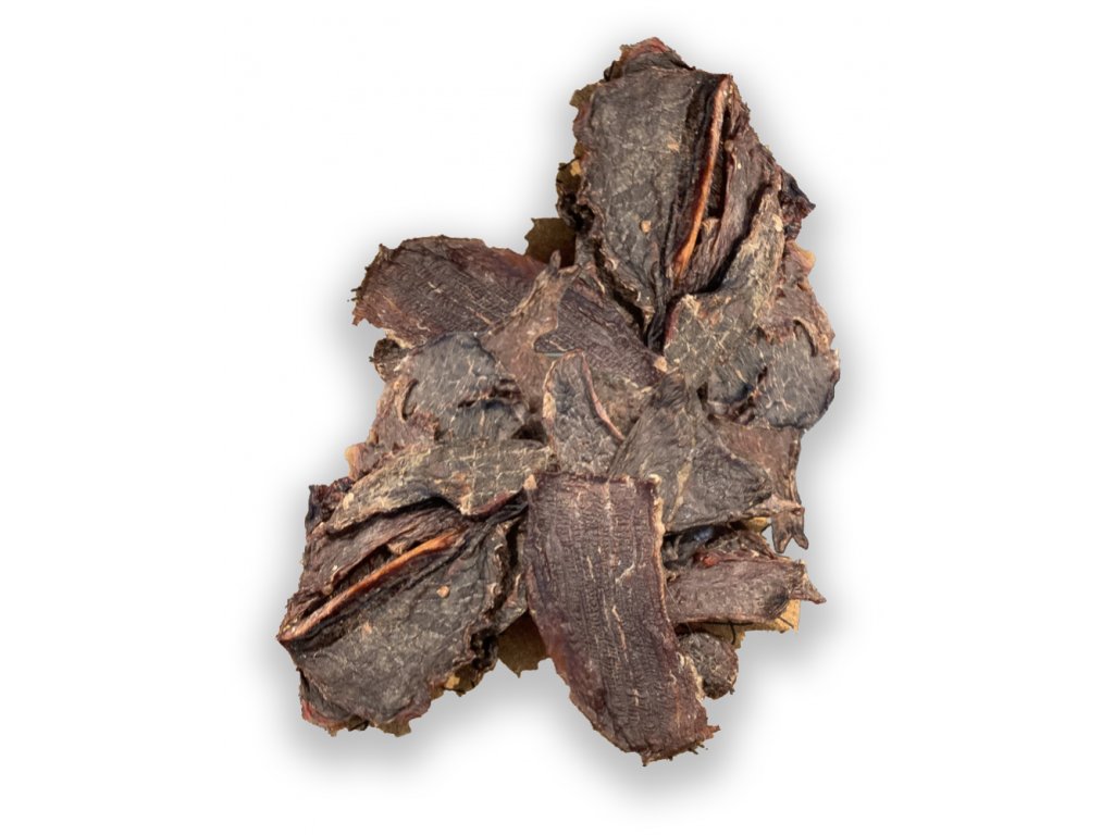 Složení: Hovězí zadní kýta 100 % (sušené v potravinářské kvalitě)