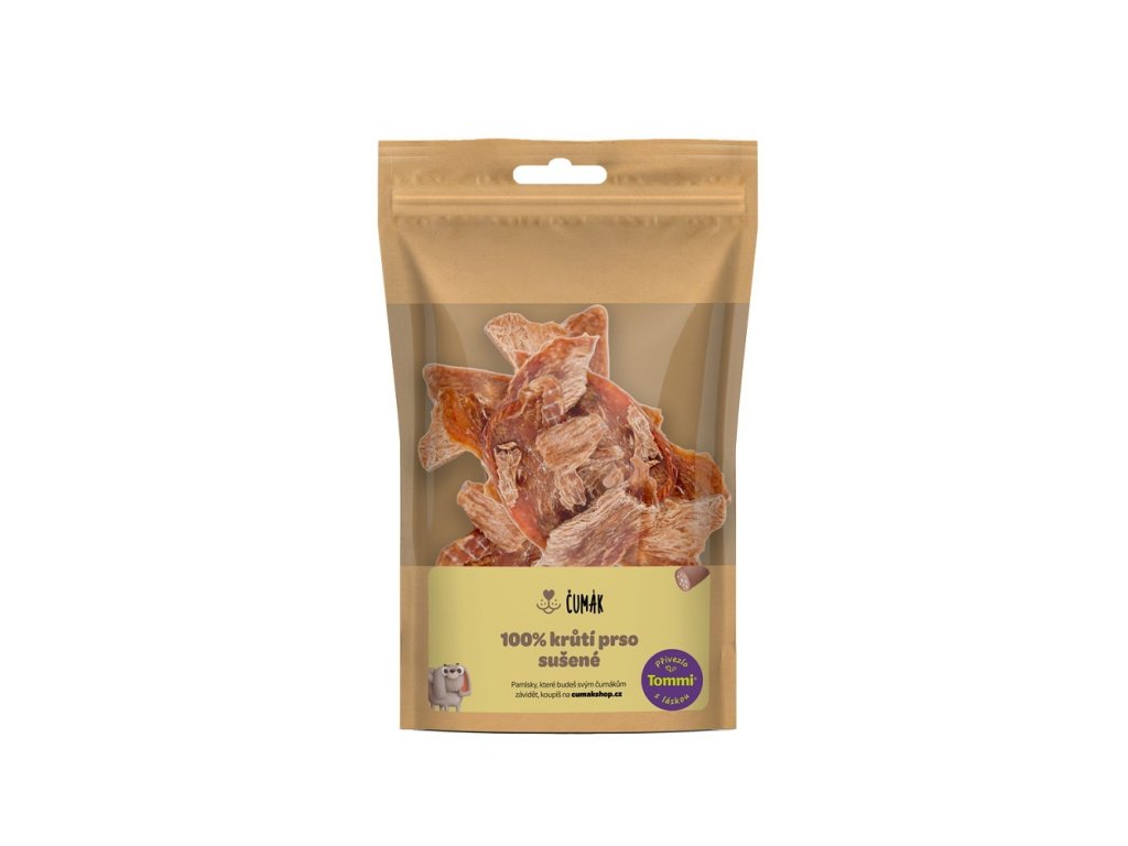 Ne náhodou je krůtí prsíčko náš pilotní pamlsek. Sušené krůtí prsíčko (usušeno z 200g syrového masa) v sobě má spoustu bílkovin, nízký obsah tuku, je hypoalergenní, a hlavně strašně dobrý. Kromě šťastného čumáku tak pomůže vašemu mazlíčkovi i k nádherné srsti a zdravým svalům. Je jen na vás, jestli ho odměníte malým kouskem, anebo svoje spektrum lásky vyjádříte pořádnou porcí. Musíme vás ale varovat, hrozí totiž, že po prvním balíčku už jiné pamlsky nebudou vašemu čumákovi po chuti.