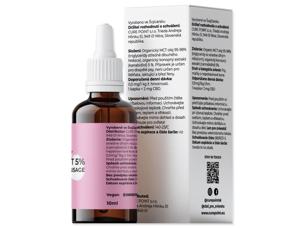 - CBD olej Cure Point je zároveň v České republice a na Slovensku registrovaný jako veterinární přípravek.