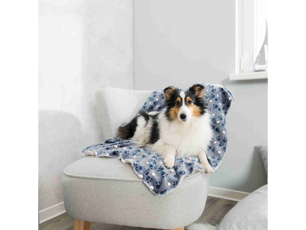 Deka TAMMY jemný plyš/dlouhý plyš, modrá s packami