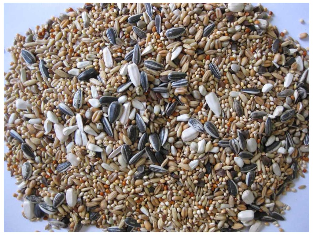 Složení: Pšenice, čirok, proso, semena světlice barvířské, kukuřice, konopné semínko, pohanka, fazole mungo.