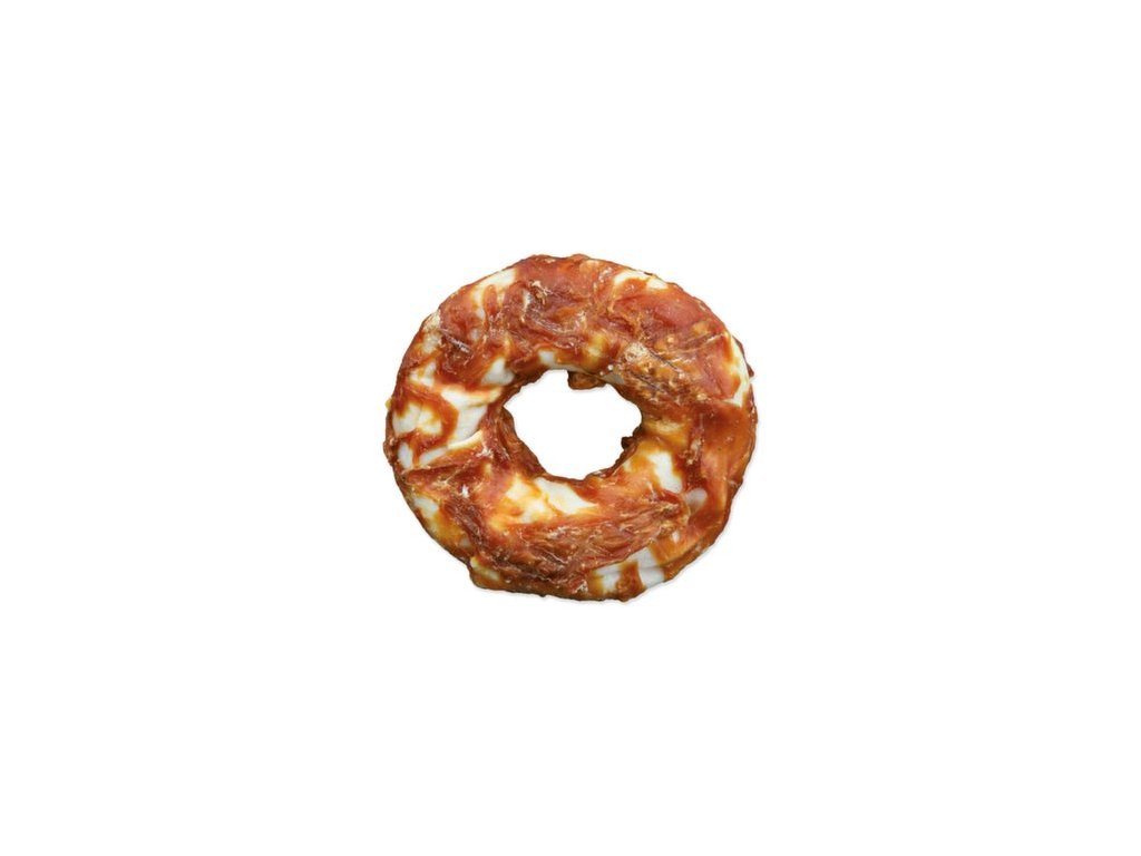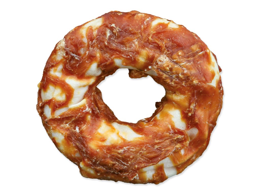 Žvýkací kruh pro psy z bůvolí kůže obalený kuřecím masem. Podávejte jako pamlsek nebo odměnu. Udržuje zdravé zuby a svěží dech. Žvýkáním si pes posiluje žvýkací svaly a zároveň se zabaví na dlouhou dobu.