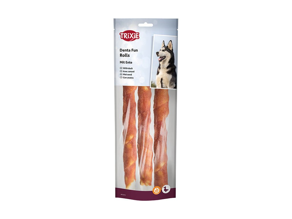 Pochoutka Trixie DentaFun buvolí kůže obalená kachním, rolky 3ks