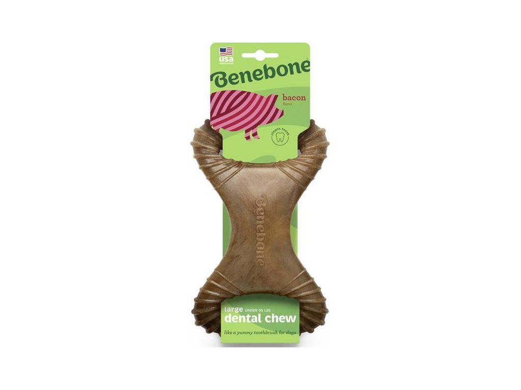 Dentální hračka pro psy Benebone Dental Chew slanina vel. L, 21,1 × 11,4 cm