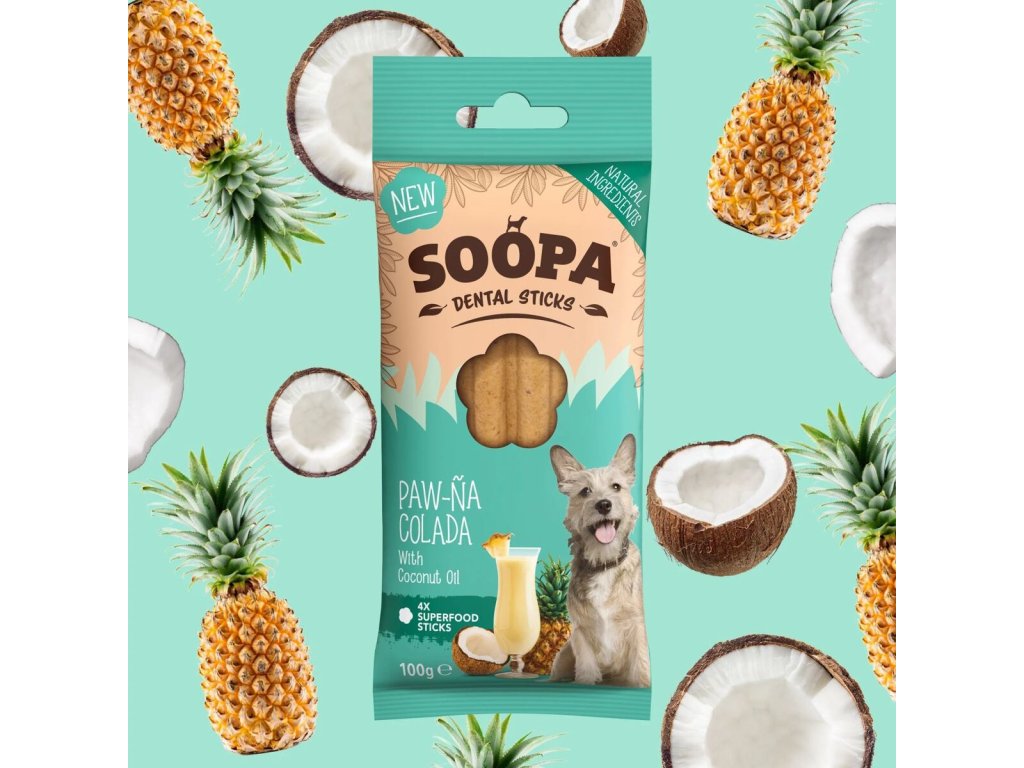 Dentální tyčinky Soopa Paw-Na Colada 100 g