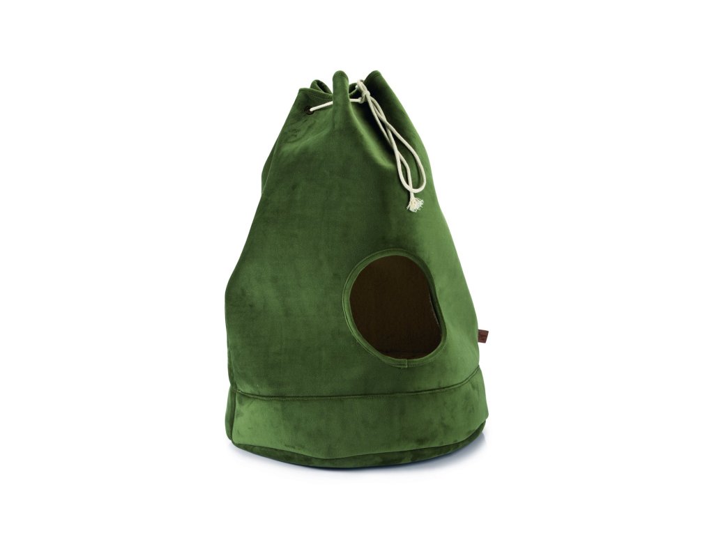 Představujeme útulný kočičí domeček, kterým Vaší kočce dopřejete její vlastní místečko k nerušenému odpočinku. Bonusem je to, že se bude i krásně vyjímat ve Vašem interiéru. Pelíšek svým tvarem připomíná vak, který se zavazuje šňůrkou. Otvor v přední části nabízí snadný vstup. Součástí je měkký polštář, který zajistí pohodlí. Polštářek lze prát v pračce na 30 stupňů.