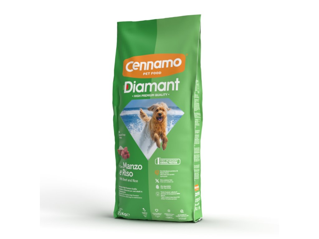 Složení: Maso a vedlejší produkty živočišného původu 38 % (dehydrované hovězí 25 %, hydrolyzát z čerstvého hovězího masa 10 %), kukuřičná mouka, pšenice durum, oleje a tuky, rýže 4 %, řepné řízky, čekanková vláknina (zdroj inulinu), hydrolyzované živočišné bílkoviny, kvasnice, minerální látky, extrakt z karobu, extrakt z kaštanu, F.O.S. (fruktooligosacharidy).