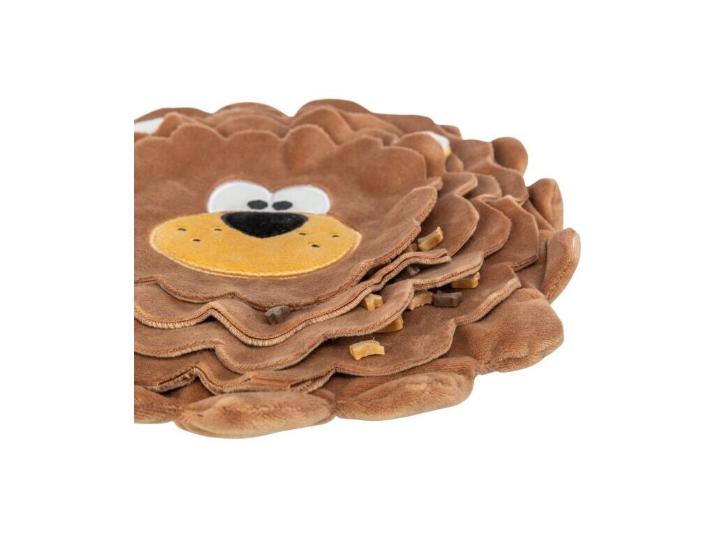 - Zábavná a praktická hračka v atraktivním designu lví hlavy, která nabízí skvělý způsob, jak zabavit psa a zároveň podpořit jeho přirozené instinkty. Kobereček je navržen tak, aby v něm šlo schovat pamlsky nebo granule – pes je pak musí vyčmuchat, což stimuluje jeho mysl, rozvíjí čich a zabraňuje nudě. Skvělý nejen ke hře, ale také jako pomůcka pro pomalé krmení, zejména u psů, kteří hltají. Pomalé vyhledávání potravy pomáhá zlepšit trávení a snižuje riziko torze žaludku. Vhodné pro psy všech velikostí.