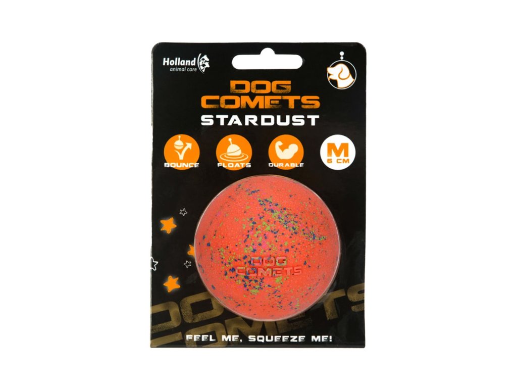 Stardust míček je vyroben z přírodního kaučuku, který dokonale skáče a je velmi odolný. Pejsci jsou nadšeni, jak pohodlně se žvýká a majitelé zase tím, že vydrží, při žvýkání masíruje dásně a udržuje psí zoubky čisté. Míček lze po hraní snadno opláchnout, protože je voděodolný.