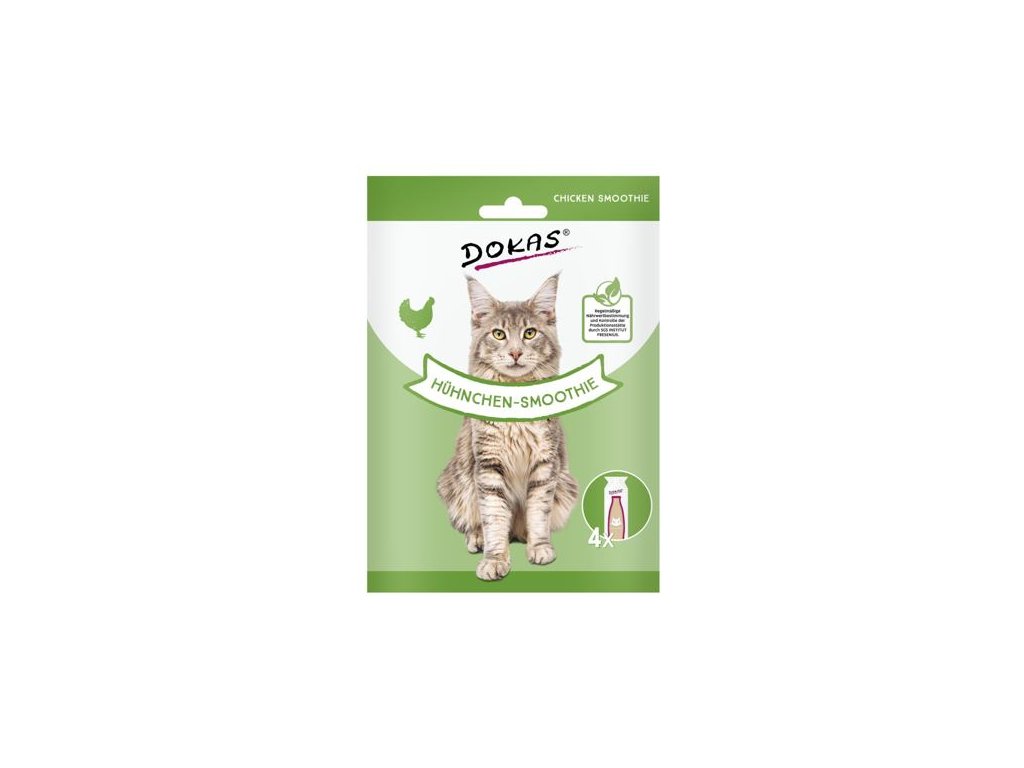 Krémová dobrota pro ty nejmlsnější jazýčky překvapí svým delikátním složení, konzistencí i chutí. Lahodný krém z kuřecích filetů, borůvek, celeru a mořské řasy odmítne jen málokterý kočičí mlsoun. Stejně jako všechny pamlsky Dokas, i tato pochoutka je bez konzervantů, umělých barviv, dochucovadel a glycerinu. Složení: filet z kuřecích prsou 60 %, vedlejší rostlinné produkty, mořská řasa Kombu, celer, borůvky Analýza: hrubé bílkoviny 8,5 %, hrubé oleje a tuky 2,4 %, hrubé popeloviny 0,5 %, hrubá vláknina 0,5 %, vlhkost 87,3 % Podávejte jako odměnu. Zajistěte dostatek pitné vody. Po otevření pečlivě uzavřete zipem a skladujte v suchu a chladu. Balení obsahuje kyslíkový absorbér pro uchování kvality výrobku. Pamlsky jsou v dnešní době nedílnou součástí krmení mazlíčků, a tak i u nich je potřeba dbát nejen na chuť, ale i na zdravé složení. U pamlsků Dokas máte jistotu, že všechny použité suroviny splňují přísná kritéria a jsou během výroby pravidelně prověřovány. Psí a kočičí pamlsky Dokas podléhají pravidelným kontrolám kvality světově uznávaným německým institutem SGS Institut Fresenius. Tato nezávislá laboratoř patří mezi přední evropské společnosti testující kvalitu potravin.Doplňkové parametry