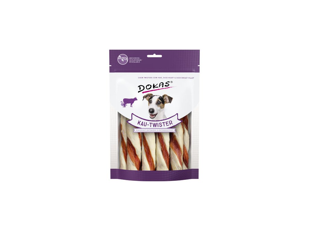 Kroucené tyčky z hovězí kůže s kachními srdíčky a masem. Jejich žvýkání pomáhá udržovat zdravé zuby a dásně. Vysoká kvalita použitých surovin zaručuje výraznou chuť a vůni. Jsou velmi oblíbené pro své přírodní složení. Pamlsky Dokas jsou bez konzervantů, umělých barviv, dochucovadel a glycerinu. Sáček má praktické uzavírání, pamlsky tak zůstanou déle čerstvé a voňavé. Složení: hovězí kůže 62 %, filet z kachních prsou 15%, kachní srdíčka 12 %, vedlejší rostlinné produkty Analýza: hrubé bílkoviny 60,8 %, hrubé oleje a tuky 3,9 %, hrubé popeloviny 2,3 %, hrubá vláknina 0,5 %, vlhkost 11 % Podávejte jako odměnu. Zajistěte dostatek pitné vody. Po otevření pečlivě uzavřete zipem a skladujte v suchu a chladu. Balení obsahuje kyslíkový absorbér pro uchování kvality výrobku. Pamlsky jsou v dnešní době nedílnou součástí krmení mazlíčků, a tak i u nich je potřeba dbát nejen na chuť, ale i na zdravé složení. U pamlsků Dokas máte jistotu, že všechny použité suroviny splňují přísná kritéria a jsou během výroby pravidelně prověřovány. Jaké suroviny najdete ve složení pamlsků Dokas? Maso Maso je jednou z hlavních složek psí a kočičí potravy. Z toho důvodu tvoří největší podíl také v našich pamlscích. Je pečlivě vybíráno a šetrně zpracováno tak, aby výsledný produkt obsahoval vysoce kvalitní bílkoviny a tuky. Ryby Ryby jsou výbornou alternativou k masovým pamlskům. Obsahují vysoké procento nenasycených mastných kyselin. Omega 3 mastné kyseliny pomáhají udržovat zdravou kůži a lesklou srst. Ovoce a zelenina Vitamíny a stopové prvky v ovoci a zelenině jsou zdravé nejen pro lidi, ale také pro naše čtyřnohé přátele. Rádi kombinujeme maso a ryby s vybranými lehce stravitelnými druhy, jako je jablko, banán, mango, mrkev a batát. Hovězí a vepřová kůže Kosti vyrobené hovězí a vepřové kůže pomáhají pečovat o zuby vašeho psa a také jej umí perfektně zabavit. Kombinujeme je s masem či rybí kůží, což zvyšuje jejich oblíbenost. Díky těmto žvýkacím pamlskům nebude mít váš pes potřebu kousat vaše boty či zařízení bytu. Sůl Psi potřebují sůl zejména pro tvorbu kyseliny chlorovodíkové v jejich žaludku a k udržení správné funkce nervové soustavy. Její nadbytek však není žádoucí, proto přidáváme do našich pamlsků pouze malé množství, méně jak 0,3%. Kvasnice Kvasnice obsahují vysoký obsah proteinu, vitamínů a minerálů. Pomáhají udržovat zdravou kůži a srst. Rostlinné produkty Získáváme je při zpracování rostlinných surovin, například zeleniny a luštěnin. Nepoužíváme žádné odpady z rostlinné výroby a plnidla. Minerální látky Minerální látky jsou nezbytnou součástí výživy psa, jehož organismus si je nedokáže sám vyrobit. Používáme pouze malé množství soli (méně než 0,3%).Doplňkové parametry