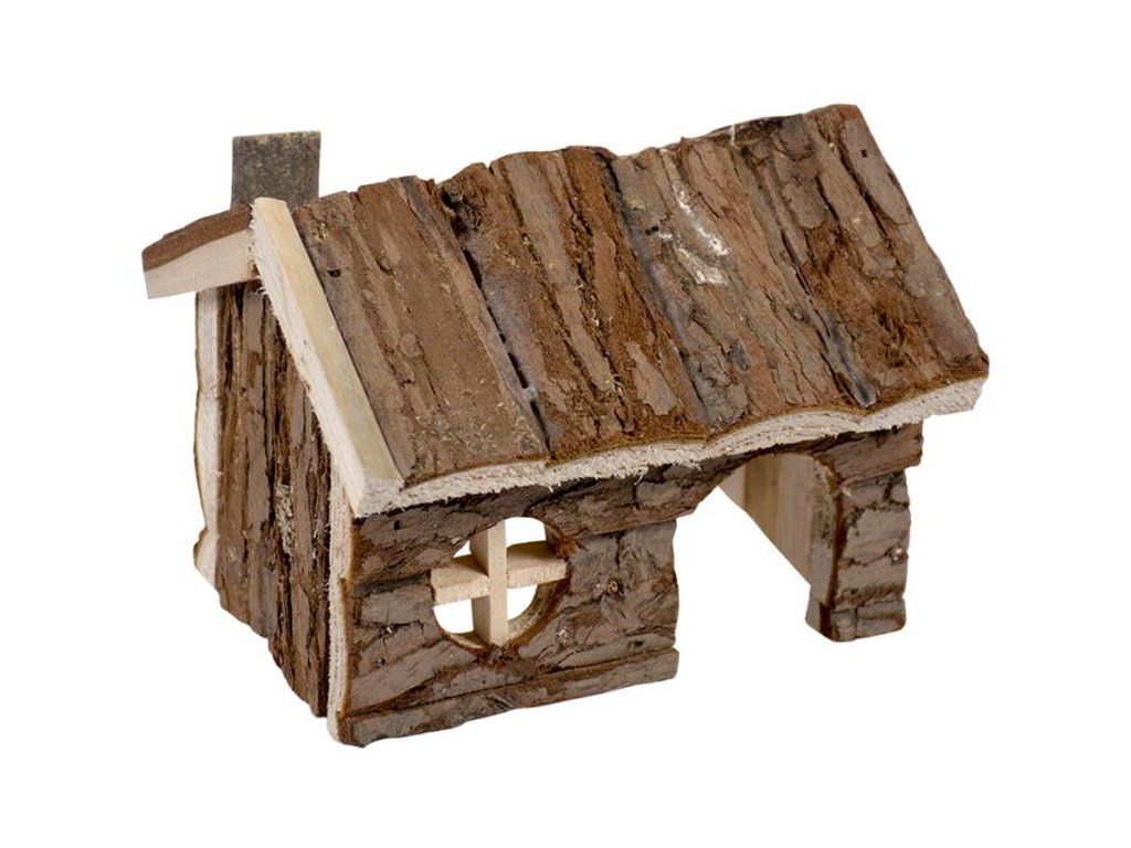 Dřevěný domek s kůrou pro malé hlodavce. Poskytne zvířatům bezpečné místo pro hru a klidné, zastíněné místo pro odpočinek. Domek poslouží i jako přírodní materiál k hlodání a obrus hlodavých zubů. Dřevěný materiál podporuje přirozený hlodavý instinkt. Hlodání je důležité pro dostatečné obrušování stále rostoucích hlodavých zubů a udržení jejich růstu pod kontrolou.