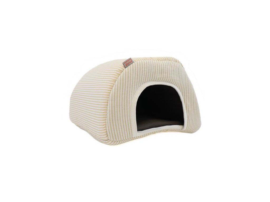 Domek pro hlodavce Samohýl oblouk L, béžovobílé proužky, čokoládový velvet, 27x27x20 cm