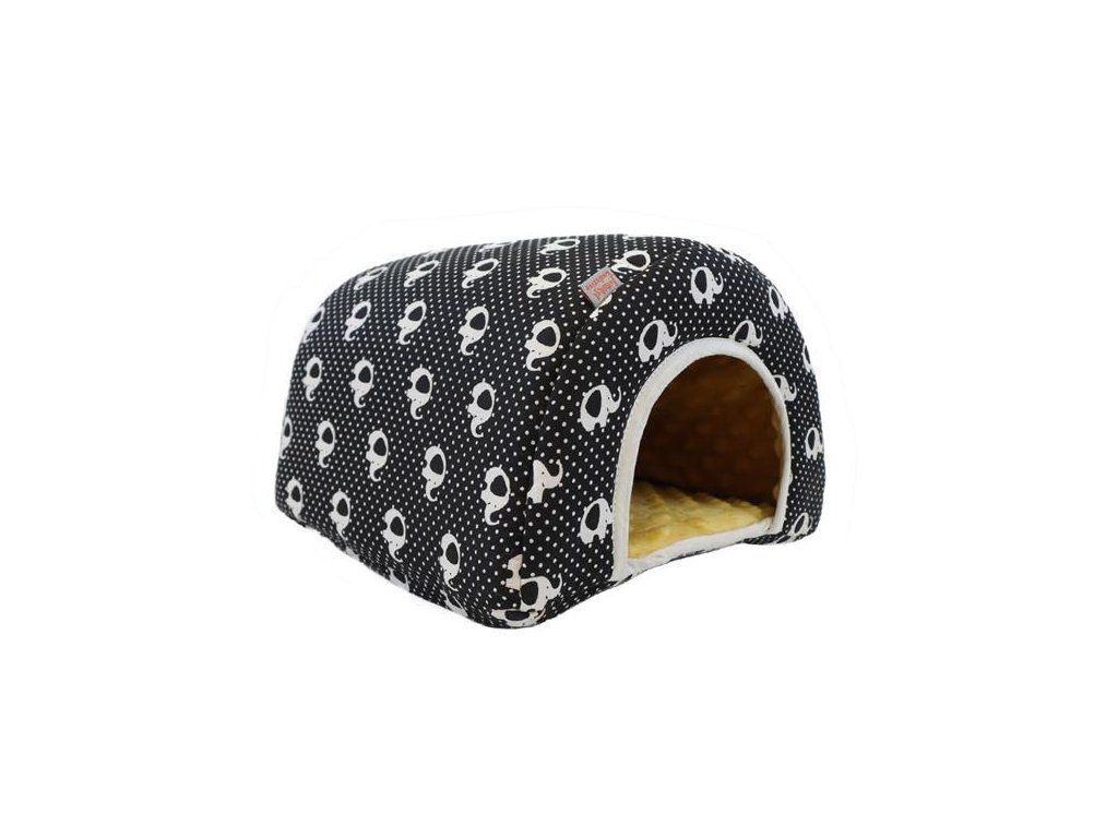 Domek pro hlodavce Samohýl oblouk L, černobílí sloni, okrová minky, 27x27x20 cm