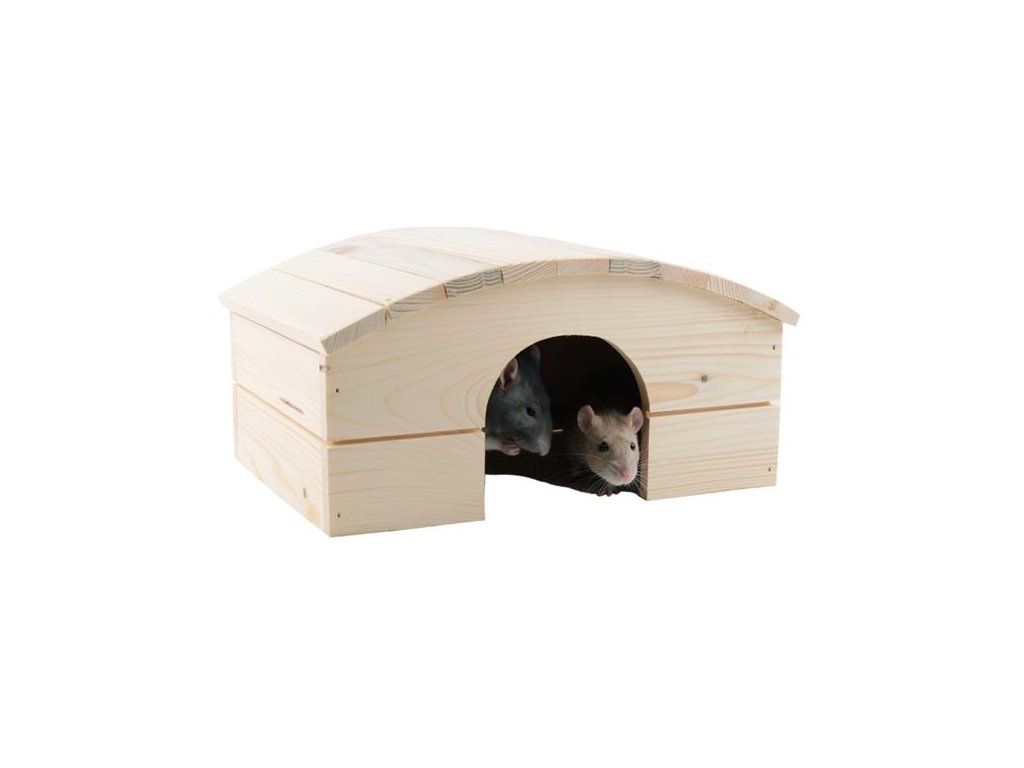 Dřevěný domeček s obloukovitou střechou pro králíka a další drobné savce.