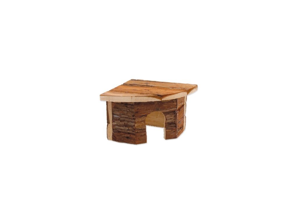 Domek Small Animals Rohový dřevěný s kůrou 16x16x11cm